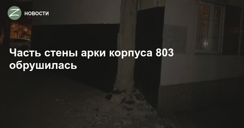 Это произошло вечером в понедельник. Подобные дефекты есть также в корпуса 802 и 803, рассказал местный житель Игорь К., сообщивший о проблеме. По его словам, шесть лет назад часть стены над аркой корпуса 801 заменили профлистом. Этим корпусам 50 лет, а капремонт запланирован ещё нескоро. А предлагаемое властями собрание собственников провалилось из-за отсутствия кворума