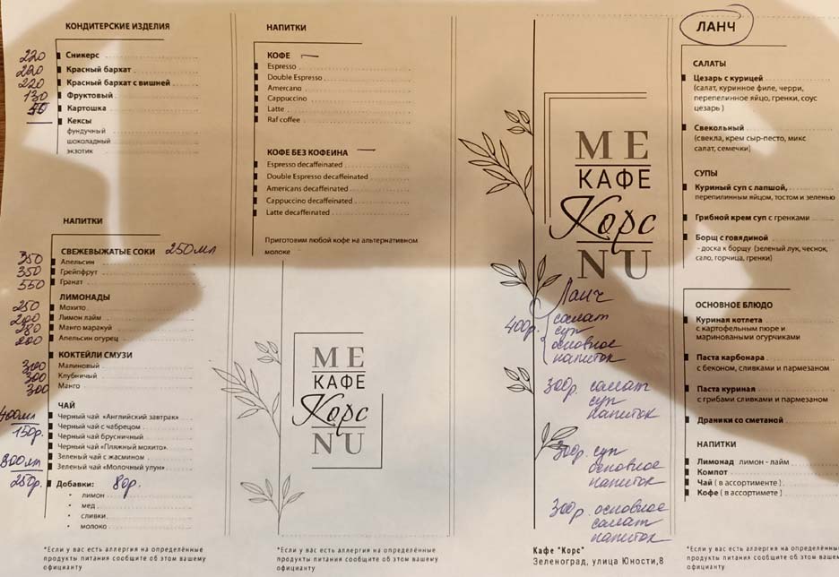 Цены умеренные — меню на фото .