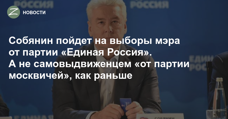 Сергей Собянин будет выдвигаться на предстоящие выборы мэра Москвы от партии «Единая Россия». Раньше он уже дважды переизбирался, но в выборах участвовал, как самовыдвиженец, собирая подписи.