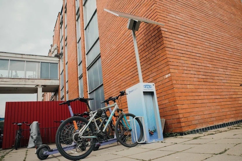 Сейчас изготовлен и установлен первый рабочий прототип «Велоточки». Его продумывали с нуля — проектировали антивандальную конструкцию, общий дизайн конструкции, рассчитывали электрический баланс, создавали документацию для производства. Изначально «Велоточку» планировалось установить на велопарковке у главного входа в МИЭТ, но сделать это не удалось из-за подземных коммуникаций, поэтому её разместили у «Протона».