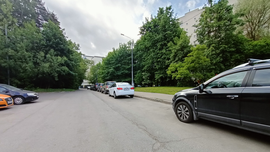 Парковка для сотрудников и посетителей поликлиник вдоль этого проезда стала фактически единственной альтернативой парковке во дворах соседних домов. Ведь после ремонта всю территорию поликлиники обнесли забором, доступ на привычные парковочные места возле поликлиники оказался закрыт для всех, кроме машин «скорой помощи» и инвалидов. Даже рано утром в воскресенье проезд был практически полностью запаркован. Причем машины стояли максимально близко ко входу в поликлинику — скорее всего это были машины сотрудников поликлиники.