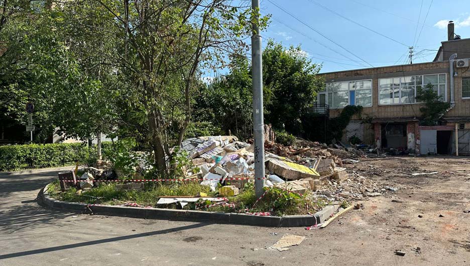 В снесенной постройке раньше работал прием лома, потом просто была какая-то свалка. Также сломали стену, соединяющую здание с ТЦ — она закрывала внутренний двор. Сейчас на месте сноса груда обломков.