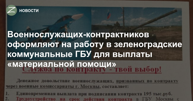 Как пояснил сотрудник одной из зеленоградских управ, при заключении контракта на военную службу, оформляется трудовой договор с зеленоградскими ГБУ «Жилищник» или ГБУ «Автомобильные дороги», который затем (на период действия контракта на военную службу) приостанавливается, но по нему ежемесячно выплачивается материальная помощь в размере 75 тысяч рублей (это помимо городской выплаты в 50 тысяч, положенной по указу мэра).