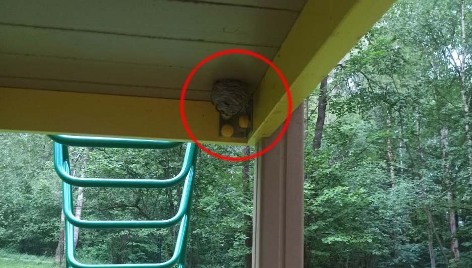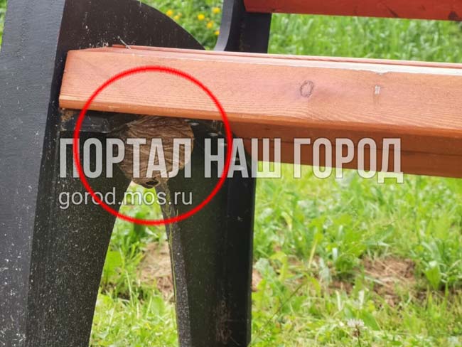 Одно гнездо построено под основанием горки, другие — под лавочками. Взрослому туда залезть сложно, а вот играющий ребенок сможет легко. Есть сообщения об ужаленных детях.