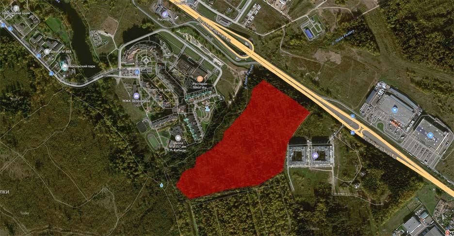 В мае правительство Московской области объявило, что концерн «Крост» стал участником программы «Земля за 1 рубль» — компания получила в аренду участок размером 18 га. В разных сообщениях участок описывается, как расположенный либо в Химках, либо в Солнечногорского округе. Из этого можно сделать вывод, что участок находится либо в Луневском, либо в Кутузовском поселениях — их как раз передали под управление Химкам. Участок подходящий площади нашелся как раз в Лунёвском поселении.