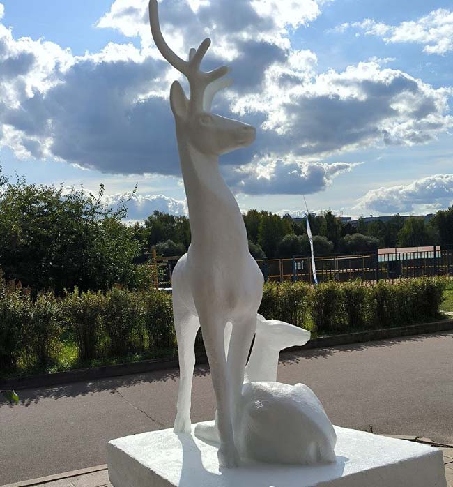 Почти полвека эта парковая скульптура стояла на улице Юности возле пятого микрорайона, и порядком обветшала. Один из зеленоградских предпринимателей профинансировал реставрацию, а непосредственно работу провел профессиональный скульптор. Оленю даже восстановили рога, которые были изначально, форму рогов удалось узнать по старой фотографии, которую передала редакции «Зеленоград.ру» местная жительница.
