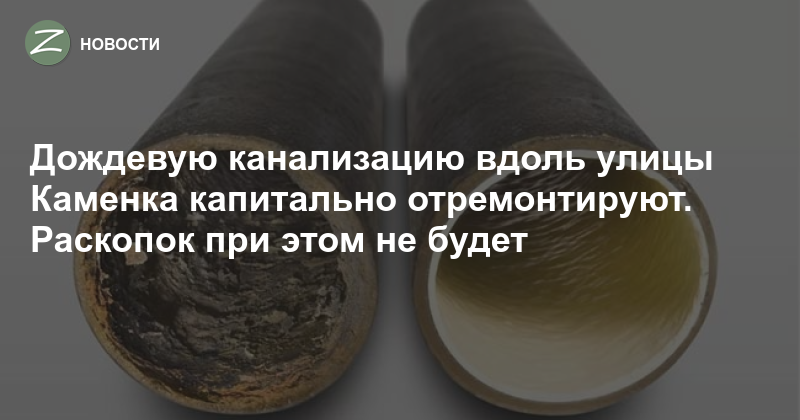 Трубы будут восстанавливать методом санации — через колодец в трубу вводится рукав, пропитанный специальным полимерным составом. В результате внутри старой трубы образуется новое покрытие (пример на фото), по сути — новая труба. Перед этим трубу осматривают с помощью камеры и очищают её.