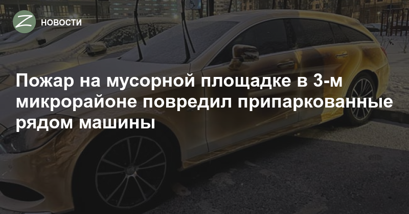 Два машины, припаркованные рядом с мусорной площадкой, немного оплавились. Судя по фото, которые опубликовал там же Артём, одна из этих машин стояла на месте для инвалидов.