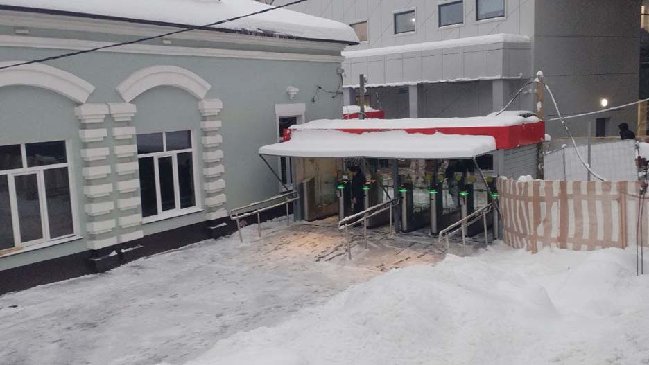 Турникеты открыли на «новом-старом» месте на Привокзальной площади: у здания старого вокзала, там, где раньше был вход в подземный переход. Одновременно разобрали кирпичный кассовый павильон. Это нужно для строительства пандуса — пологого спуска в пешеходный тоннель со стороны нового города.