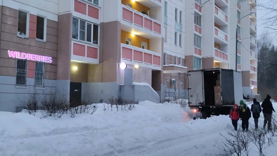 Дорожка с клумбами вдоль корпуса 340 стала местом подвоза товаров в пункт выдачи заказов «Вайлдбериз». Грузовик подъезжает непосредственно к дверям ПВЗ, а ограждения-крабы, которые перегораживали въезд к дому исчезли. А ведь по этой дорожке проходит множество детей — в школу и детсады 609 и 1557 (один из них прямо напротив дома).