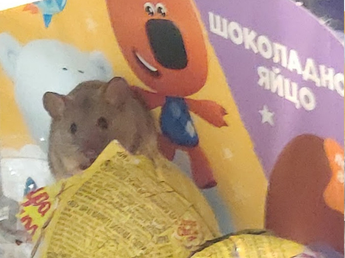 Мышь, мирно поедавшую шоколадное яйцо в зоне касс этого магазина, еще в июле заснял на видео наш читатель Роман. Он пытался поделиться записью с «Перекрёстком», но клиентская служба магазина проигнорировала обращение. В чате 9-го микрорайона мышку окрестили «местным Рататуем», появились и другие свидетельства. Сам Роман решил, что больше он в этот магазин ни ногой — «Во всех магазинах всё одинаково, так что автор обречён на смерть от голода», прокомментировал кто-то это решение.