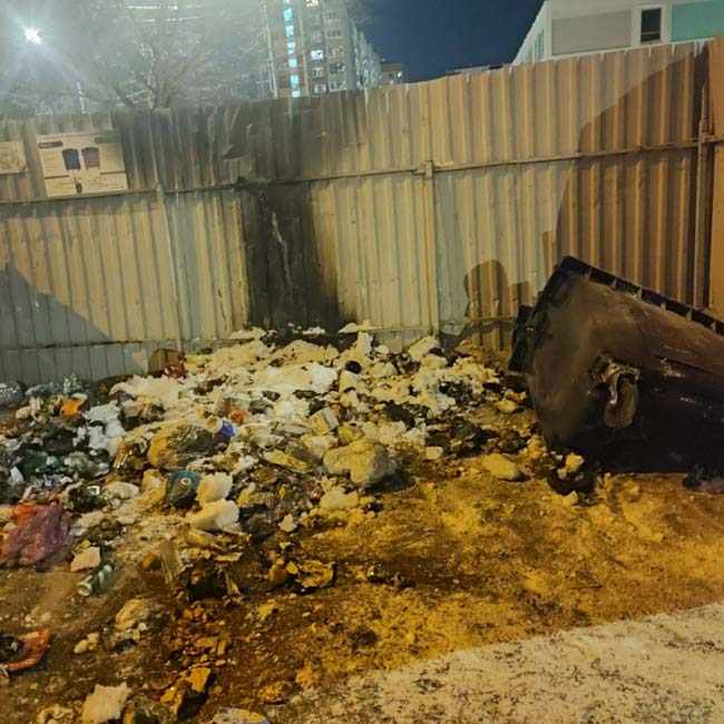Мусорные баки у корпусов 1403 и 1451 сгорели на выходных. Между домами несколько сот метров. Совпадение ли это, неизвестно.