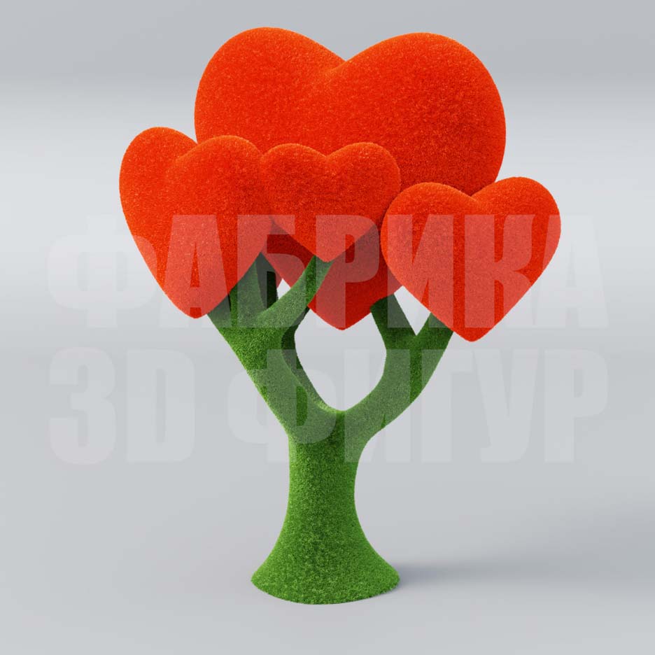 «Жилищник» заказал поставку топиарной фигуры «Дерево любви» высотой 3,3 метра. В основе конструкции — металлический каркас из профильной трубы, заполненный пенополистеролом, покрытый искусственной травой.