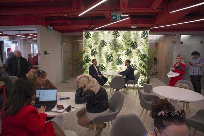 Единственный офис банка в корпусе 1824 был закрыт на реконструкцию — как назвали это в банке — три месяца. Обещали открыть его в новом формате phigital с открытым пространством и отсутствием стоек и перегородок. «Банковский офис должен восприниматься как коворкинг или кафе», поясняли в банке. В обновленном помещении действительно появились столики и кофейный автомат, но стало ли удобнее, большой вопрос.