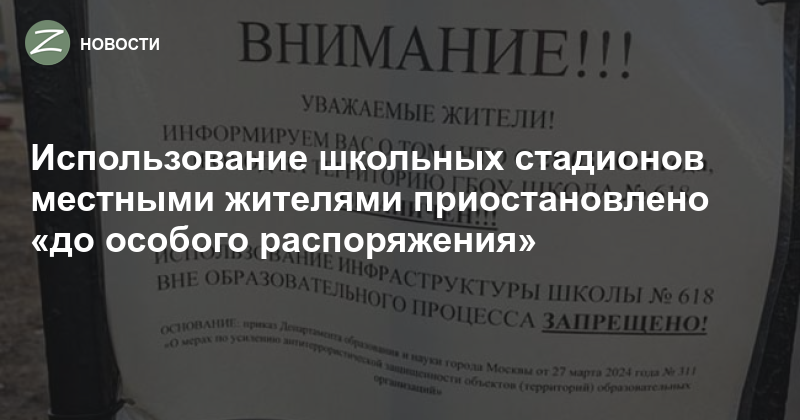 Однако после теракта в «Крокусе» проход на территории школ и на школьные стадионы был закрыт. В некоторых случаях — без объяснения причин, в некоторых — ссылаясь на приказ департамента №311 от 27 марта. Этот приказ не опубликован, на запрос редакции «Зеленоград.ру» департамент отказался предоставить текст приказа (отказ обжалован в прокуратуре).