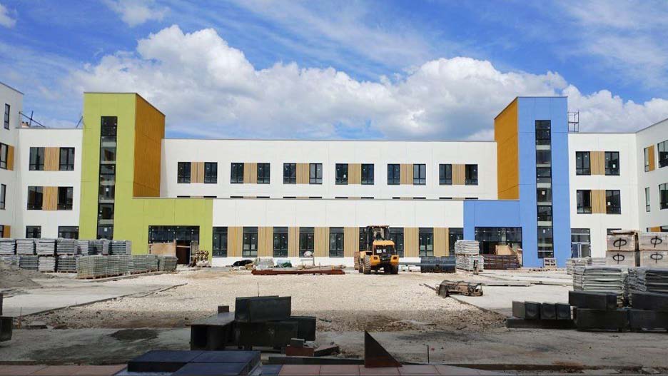 Официально школа в Голубом ещё не введена в эксплуатацию, но должна открыться 1 сентября — все сотрудники в новую школу уже набраны, а строительство завершено на 85%.