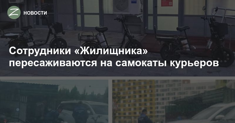 Людей в униформе «Жилищника» на электросамокатах, которые обычно используют курьеры, заметили в 17-м микрорайоне. На одной фотографии они достают свои самокаты из какого-то ангара, а на другой эти самокаты стоят возле даркстора одной из служб доставки.