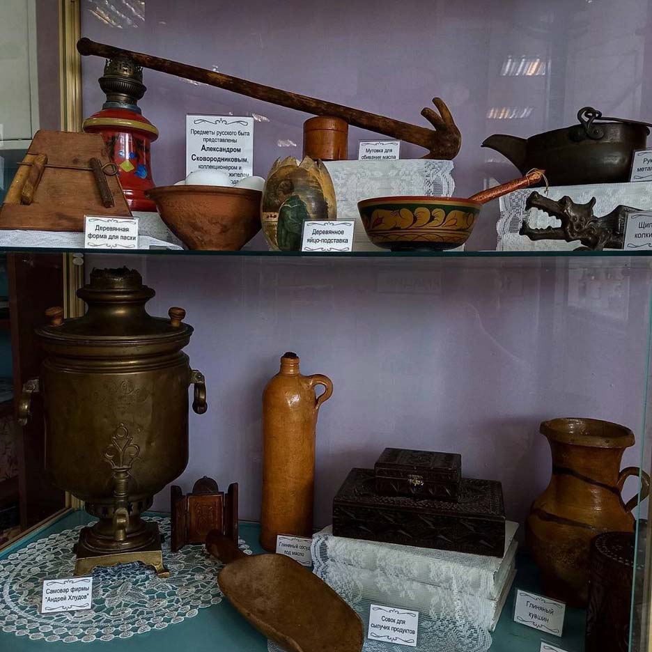Экспонаты предоставил Александр Сковородников — он художник, коллекционер, реставратор, а также папа двух сотрудниц библиотеки. Основной посыл выставки Александр видит в том, чтобы ребята могли наглядно познакомиться с реальными предметами русского быта, узнать новое о культуре своего народа, понять, как важно сохранять традиции и уважать историю.