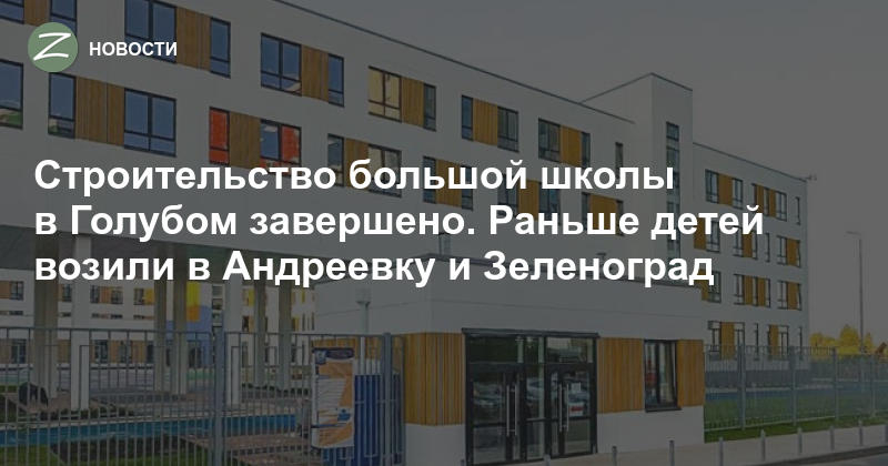 Школу в разросшемся Голубом ждали долго. Её обещал возвести ещё в 2017 году застройщик ЖК «Зеленоградский», но вместо этого построил платную парковку. Местные жители добивались строительства школы несколько лет, неоднократно обращались в различные инстанции, а детей возили учиться в Андреевку и Зеленоград. Решение о строительстве областное правительство приняло в начале 2020 года, строительство началось через два года, ещё два года школу строили — в минстрое считают, что это очень быстро.