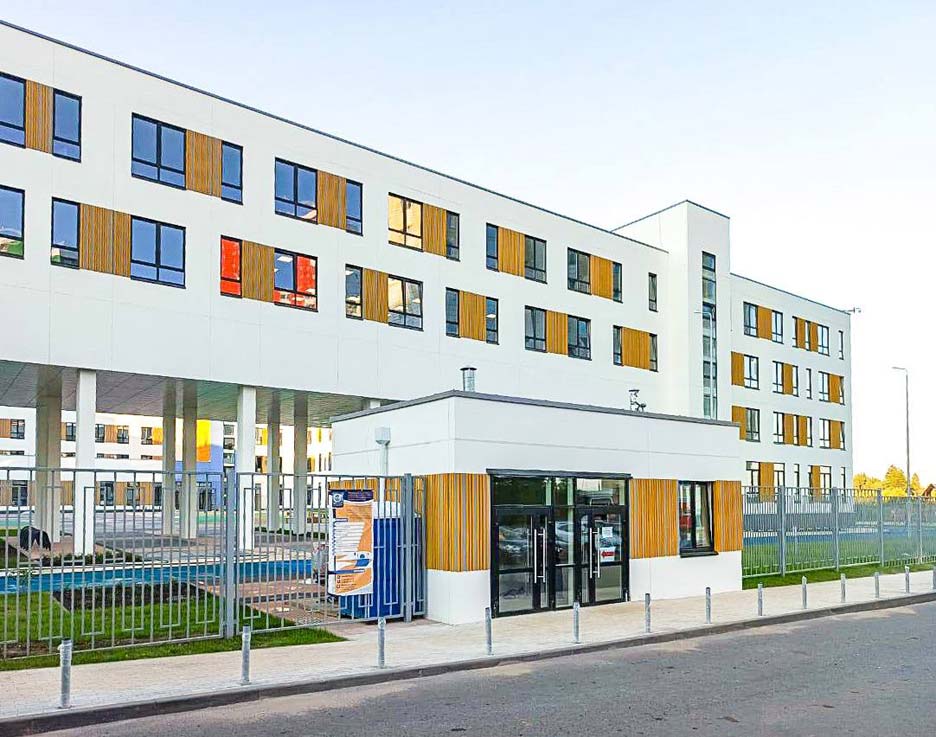 Четырехэтажная школа на 1375 учеников будет самой большой в Солнечногорского округе. Кроме учебных классов, здесь три спортивных зала, игровые для продленки, актовый и читальные залы, ИТ-зона и столовая почти на семьсот мест.