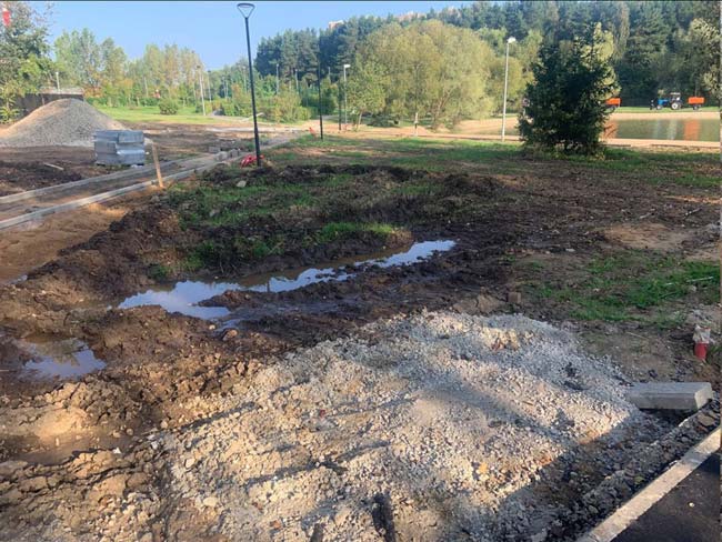 Не будем перечислять всё, что внезапно помешало торжественно завершить благоустройство — просто посмотрите фотографии — это ситуация на утро 28 августа, когда префектура заявила о готовности объекта на 94%. По первоначальным планам, завершить все работы должны были 25 августа, затем говорили про 1 сентября, но эти сроки, очевидно, сорваны.