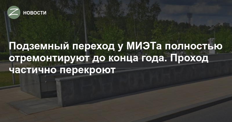 В пешеходном тоннеле возле остановки «МИЭТ» на Центральном проспекте заменят облицовку, лестницы, парапеты, перила, светильники, отремонтируют пол, ступени и инженерные сети. На это даётся два месяца. Проход по тоннелю обещают не перекрывать.