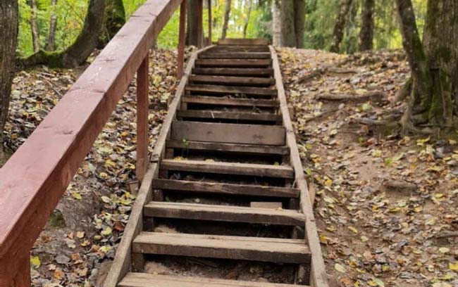 Горожане уже давно жалуются на неудачные деревянные ступеньки с опасным наклоном вниз, которые приходится чинить по нескольку раз в год. Недавно, перед самой заменой лестниц, их снова ремонтировали, судя по обращениям на портале «Наш город».