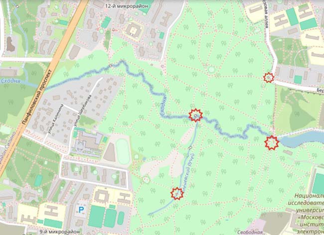 Это мост через Голеневский ручей (ближайший к корпусу 914 и школе), мост через реку Сходня (у Лисьих горок) и мост через овраг у Березовой аллеи (и корпуса 451). Металлические мосты будут обшиты доской.