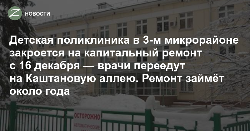 Сколько продлится ремонт, точно неизвестно. Скорее всего — около года. Здание типовое и сейчас в Москве научились приводить их к новому стандарту поликлиник примерно за год. Это последняя детская поликлиника в Зеленограде, которая требует ремонта.