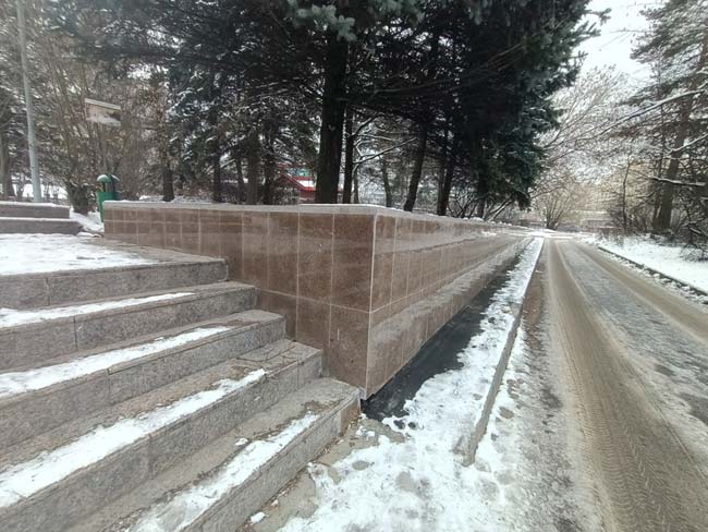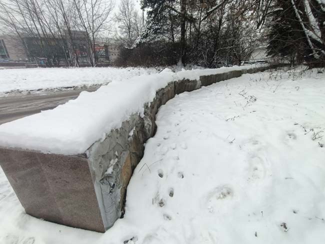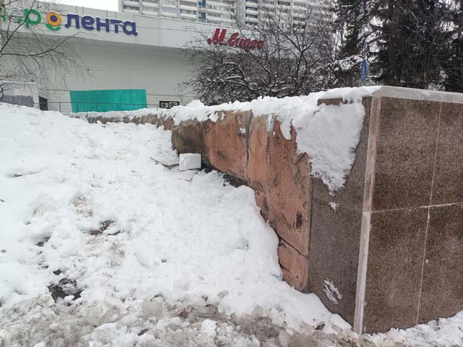 Мы осмотрели мемориал у корпуса 1006А со всех сторон — местами не очень понятно, действительно ли ремонт завершен — или на «изнанке» парапета облицовка не предусмотрена. Заказчиком ремонта выступил «Жилищник», на работы выделили около 10 миллионов рублей.
