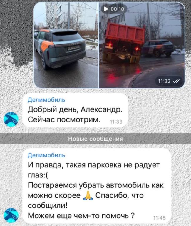 Возможно, наилучшим выходом в подобной ситуации будет обращение в службу поддержки соответствующего сервиса. Они могут связаться с водителем, который оставил так машину, или убрать её своими силами. В этом случае другой пользователь чата отправил видео и фото в каршеринг — там ответили, что постараются побыстрей убрать машины.