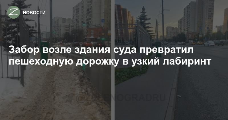 Проход от остановки «Районный суд» к подземному переходу между 15,16,18,20 микрорайонами проходит вдоль ограды корпуса 2001, в котором располагается зеленоградский районный суд. Пешеходная дорожка между Панфиловским проспектом и забором и так узкая, но ней ещё стоят фонарные столбы и вентиляционная труба подземного коллектора. Зимой ещё хуже — уборочная техника ездить по этому лабиринту не может, а дворники часто прочищают дорожку не больше, чем на ширину лопаты.