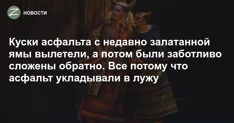 На фото результат — заплатка в проезде между корпусами 901 и 902 вылетела. Другой способ ремонта — заботливо уложить в яму куски асфальта. Вероятно, по мнению «Жилищника», это достаточно для ремонта.