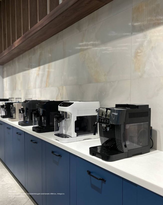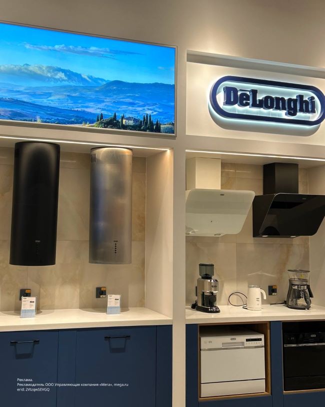 Кроме кофемашин, которыми знаменита эта компания, в магазине разнообразная бытовая техника, от стиральных машин до тостеров.