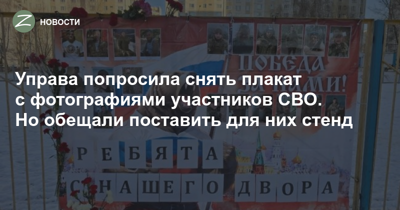 Об этом сообщила в чате района местная жительница Екатерина: «Плакат сняли сами — нас в управе просили это сделать настоятельно. Раз это было приурочено к празднику 23 февраля, то не может же он там висеть постоянно». Екатерина добавила, что с помощью управы поставят стенд, куда смогут «вновь выставить фотографии наших героев».
