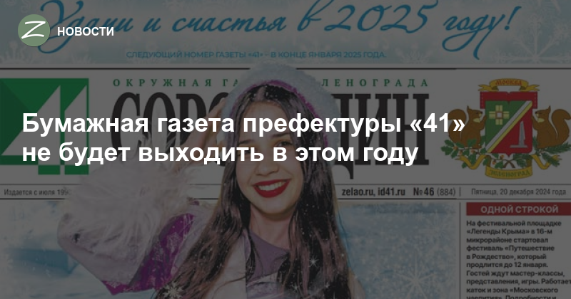 «В этом году будет выходить только рекламная газета 41+. Возможны разовые спецвыпуски», пояснили «Зеленоград.ру» ситуацию в префектуре. Префектура — учредитель газеты, а издаёт её «Издательский дом 41».