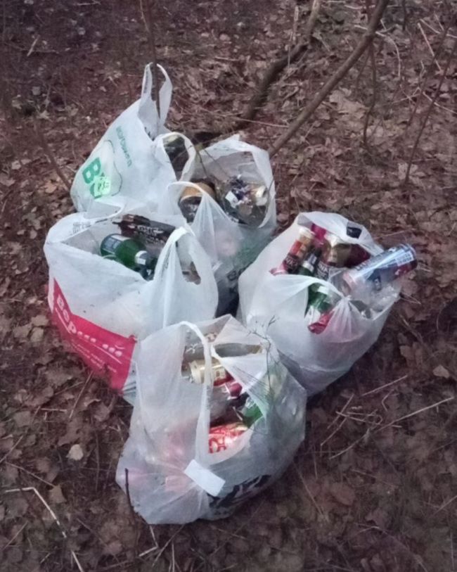 «Честно говоря, Сизифов труд, — добавляет Алена. — Несколько лет регулярно хожу в этот лесок гуляю и убираю. Ничего не меняется — везде мусор. А в этот раз превзошли сами себя эти, как их назвать поцензурнее, не знаю… Одних бутылок и банок штук пятьдесят»