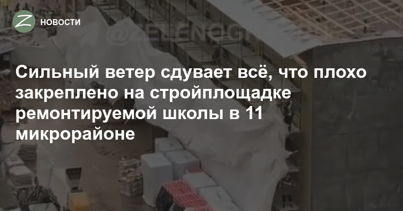 Рабочие пытаются убрать всё, что «парусит» и может улететь. Отдельные фрагменты плёнки уже улетали с этой стройки в соседний лес и повисали на деревьях, откуда их невозможно снять — автовышка подъехать не может, а альпинисты не могут забраться на высокую березу из-за тонких ветвей.