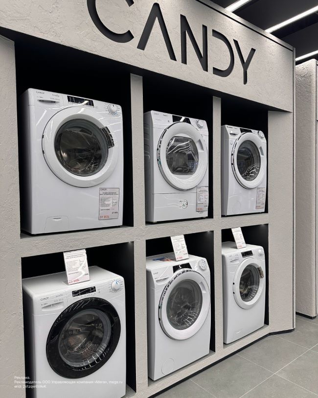 В ассортименте стиральные и посудомоечные машины, холодильники, духовые шкафы, варочные панели, вытяжки, чайники, тостеры, микроволновки и другая бытовая техника. При покупке в фирменном магазине предоставляют расширенную гарантию. Магазин находится в галерее электроники «Меги»