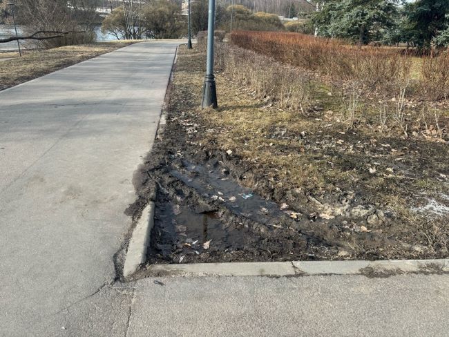 Когда жители жалуются, директор зеленоградского учреждения «Автомобильные дороги», отвечающего за уборку в парке и вдоль дорог, скупо отвечает: «работы по уборке грязи выполнены» — даже не добавляя, что пожурили тракториста.