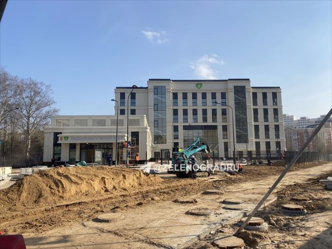 Само здание поликлиники в 18-м микрорайоне, на съезде с Крюковской эстакады, полностью построено, сейчас идёт благоустройство территории вокруг, привезли деревья. В частности, ставят забор. Это уродливо и неудобно, а для безопасности и контроля парковки есть другие методы.
