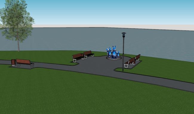 - газон, асфальтированные дорожки, фонари, новую расстановку скамеек