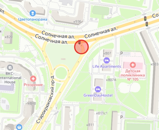 - На Сосновой аллее возле корпуса 607 сделают разворот в сторону Московского проспекта, для этого демонтируют часть отбойника