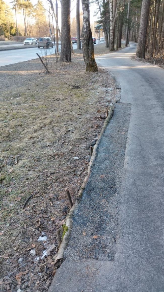 Впрочем, возможно, зеленоградские коммунальщики используют какие-то новые технологии укладки асфальта. Например (на второй фотографии), ремонт пешеходной дорожки вдоль Московского проспекта делали с помощью асфальта и палки.