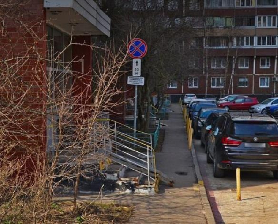 Стесненными условия у корпуса 1418 не назовешь — проезжая часть перед домом довольно широкая, с парковочными местами. Технически ничего не мешает расширить тротуар в этом месте. Но тогда ведь придётся возиться с переутверждением паспорта дворовой территории, проектированием и капитальными работами из-за какого-то одного обращения. Так, вероятно, думают, в «Жилищнике». Гораздо проще заявить, что пандус в полном порядке.