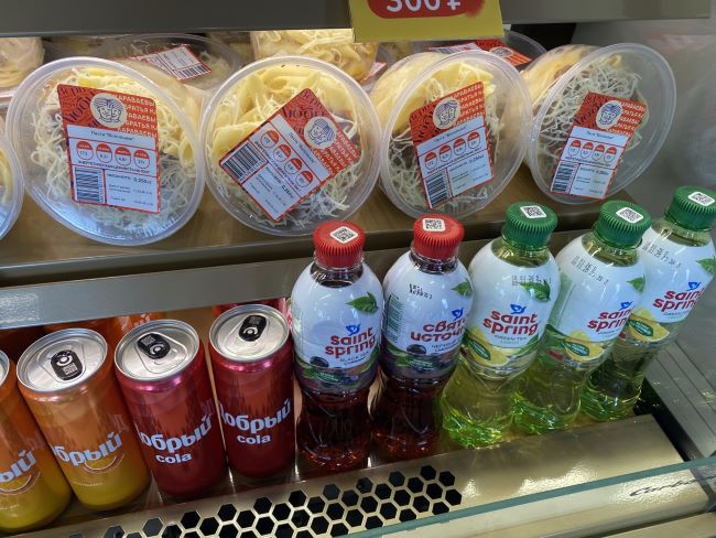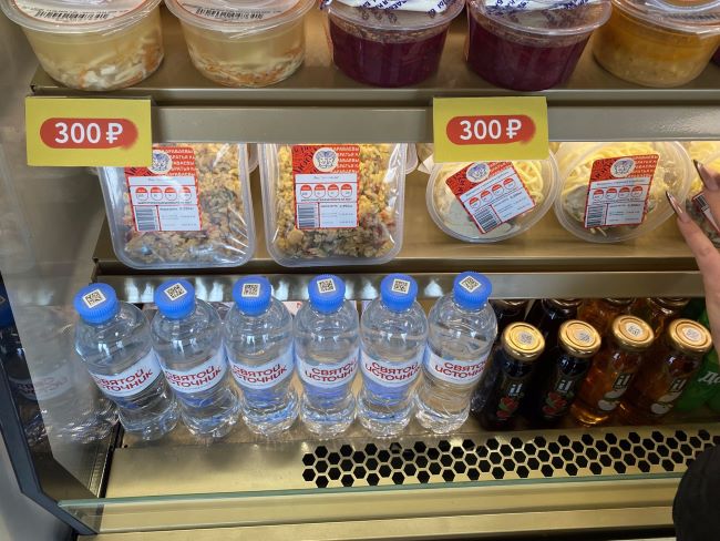 Из напитков: эспрессо, чай и вода, включая «Святой источник» с различными вкусами — 90 рублей, американо и газировки по 130, капучино и латте по 150. Также маленькие соки по 100.