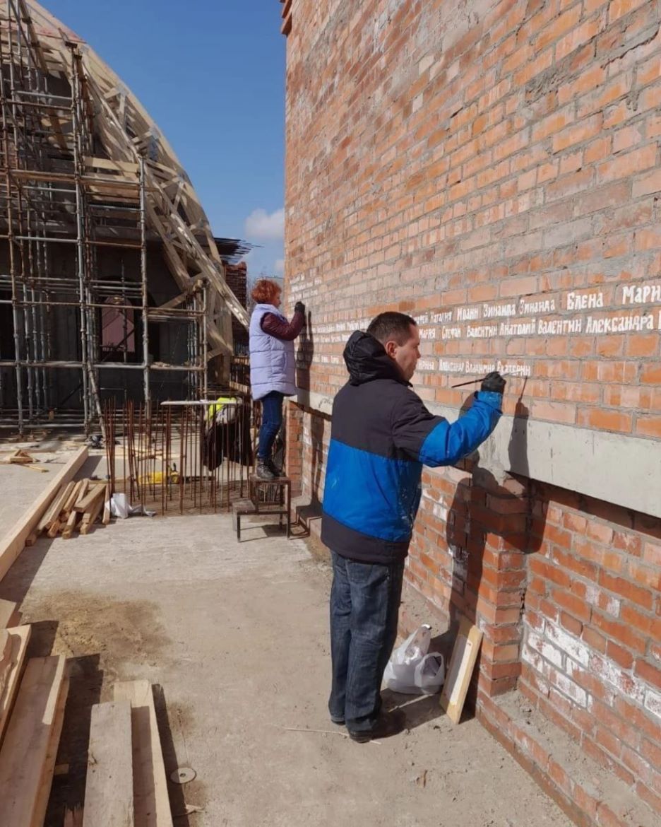 Храм строится рядом с деревянной церковью Сергия Радонежского на Панфиловском проспекте на средства от пожертвований. Каждый благотворитель получает памятный сертификат, его имя наносится на реальный кирпич в кладке стен храма, рассказали в церкви.