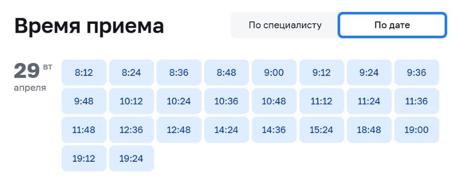 Раньше запись к оториноларингологу можно было поймать только в редкие моменты, обычно утром около 7:30. Но вчера в системе появилось много талонов на 28 апреля — их разобрали лишь к 11 утра. Сегодня ещё лучше — по состоянию на 11 часов свободно более двадцати слотов.