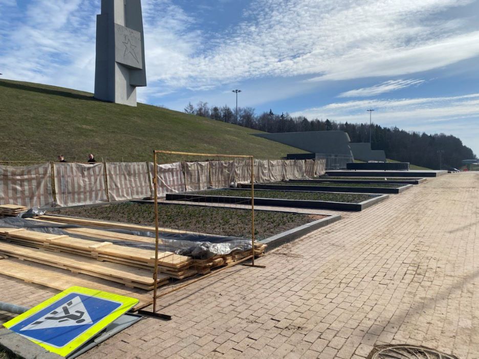 На прошлой неделе рабочие готовили фундамент для мемориальных плит, а на этой запланирован их монтаж. Важно также, что на «Штыках» будет одна пустая табличка и место для новых — чтобы добавлять новые имена. На пустой будет написано «А также неизвестные солдаты», соответственно, имён пока не будет.