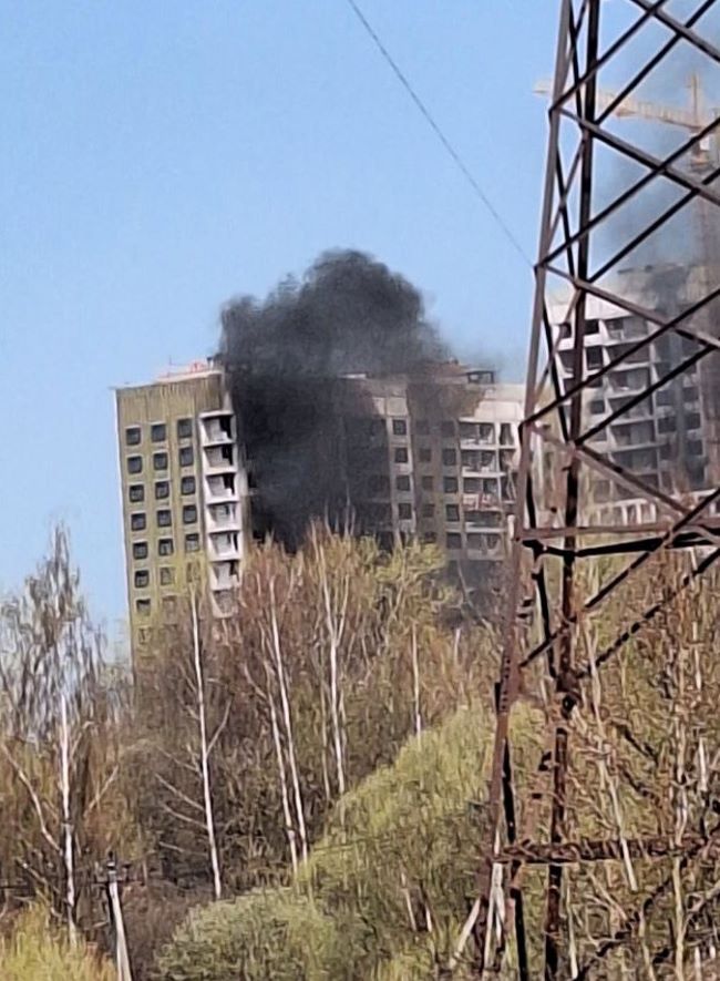 Дым виден со всего города. По имеющейся информации, горела гидроизоляция в котловане.